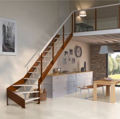 Plus économique et rapide à poser, l’escalier standard est un escalier dont les dimensions (largeur minimum de trémie, hauteur, longueur et nombre de marches) sont prédéfinies. Cependant, il peut être recoupé afin de s’adapter à la configuration de votre pièce. Si les dimensions d’escalier souhaitées sont inférieures à celles d’un escalier standard, vous pouvez donc vous diriger vers ce choix. Idéal pour les indécis, vous trouverez de nombreux modèles chez Lapeyre avec différents styles de marches, limons ou rampes pour vous inspirer.
